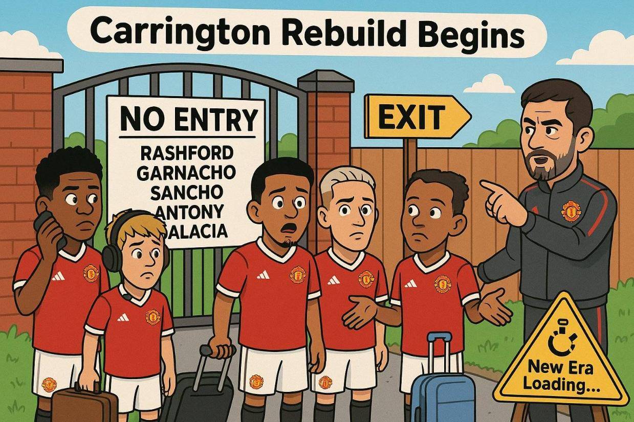 曼联的5名弃将拉什福德、桑乔、加纳乔、安东尼和马拉西亚,被英媒戏称为「炸弹小分队」(bomb squad)。因为他们留在队中随时可能引爆更衣室,主帅鲁本·阿莫林禁止他们与一线队球员接触,只能在其他队友结束训练回家后,才能在卡林顿进行训练。